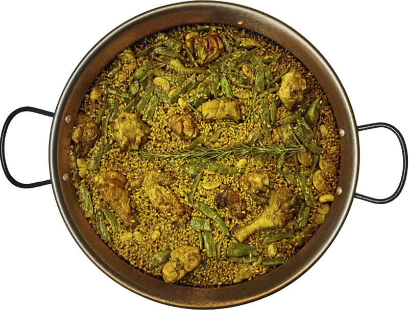 En tu Paellona® únicamente encontrarás aceite de oliva virgen extra, arroz, judía verde plana, garrofó, ñoras, pimentón, azafrán y sal marina certificados de origen nacional; muslos de pollo fresco; pescados y mariscos de calidad; verduras de temporada; fumets y sofritos caseros hechos con tomate 100% natural.